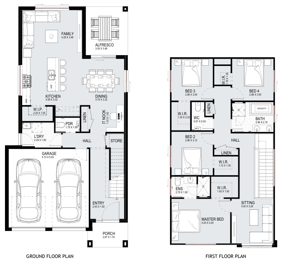 An open style staircase, featured by a void, leads you to the second floor. This level is truly designed for the new and growing family featuring a master bedroom with nursery/lounge area, large WIR concealed by a feature wall and of course, an ensuite. This floor also includes a main bathroom, 2 additional bedrooms with robes and a sitting room. This home comes with storage in mind – under stair, double garage with storage area and linen closet off laundry. The Empire is a spacious open style and natural light filled two storey home with those extra features a family needs.
