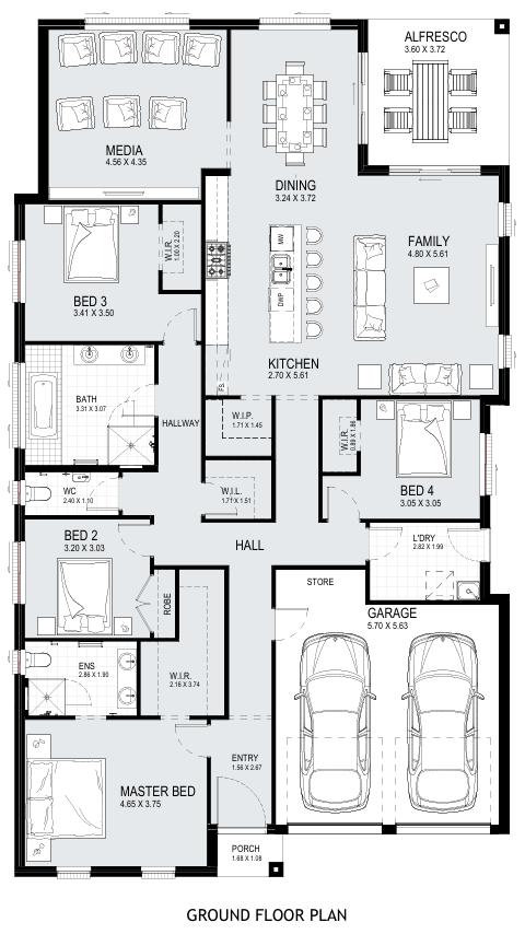 The entry hallway leads you through to the light filled family living area. You’ll be impressed by the dual open airy access to the covered alfresco. Adjacent to the dining is a generous media room. Bedrooms two and three feature a handy adjoining two-way bath, while bedroom four/guest room has its own ensuite. Retreat to your luxury master suite, more than ample walk in robe and spacious ensuite.